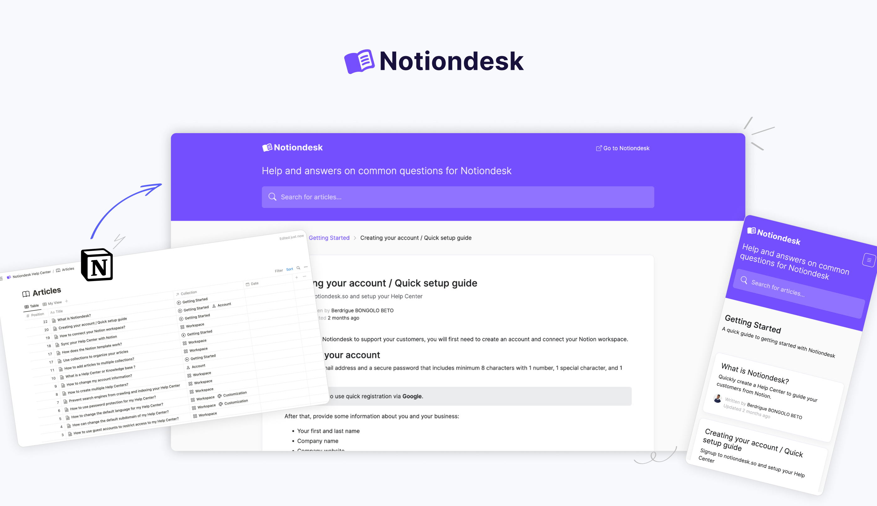 Learn more in our guide on creating a help center with Notion and Notiondesk.